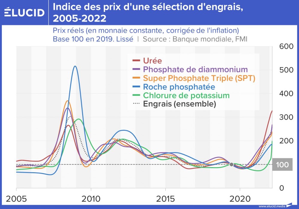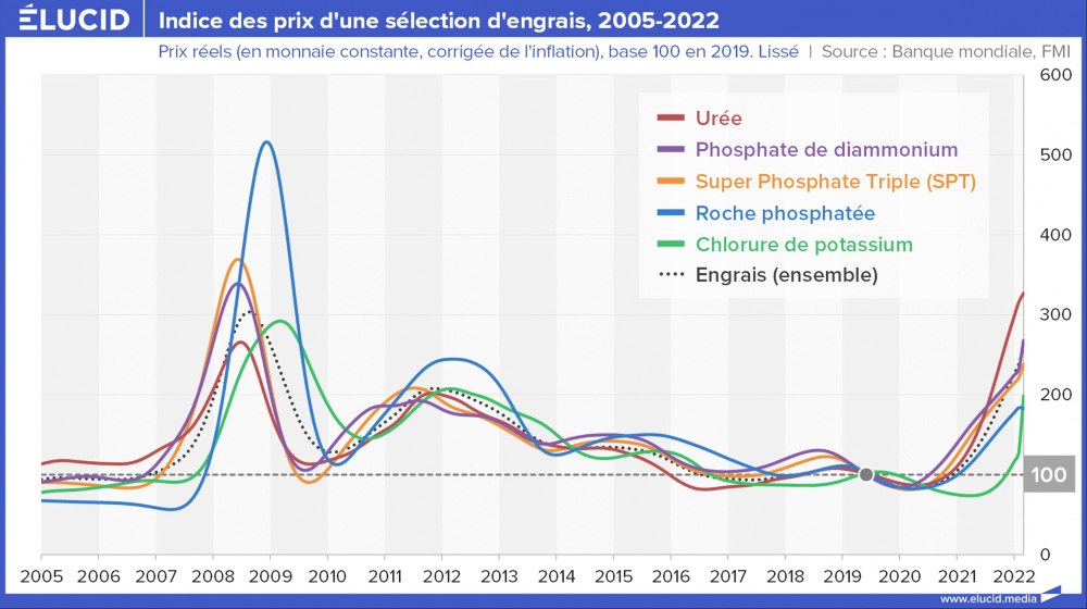 Depuis le début de la pandémie de Covid-19, le prix de l’ensemble des engrais mondiaux a triplé. Ce sont particulièrement les engrais azotés dont le prix a explosé depuis deux ans. À titre d’exemple, l’urée a connu une augmentation de 275 % sur cette période, et si l’on prend l’ensemble des engrais, leur prix n’a pas été aussi élevé depuis 2009 avec la crise des subprimes.
