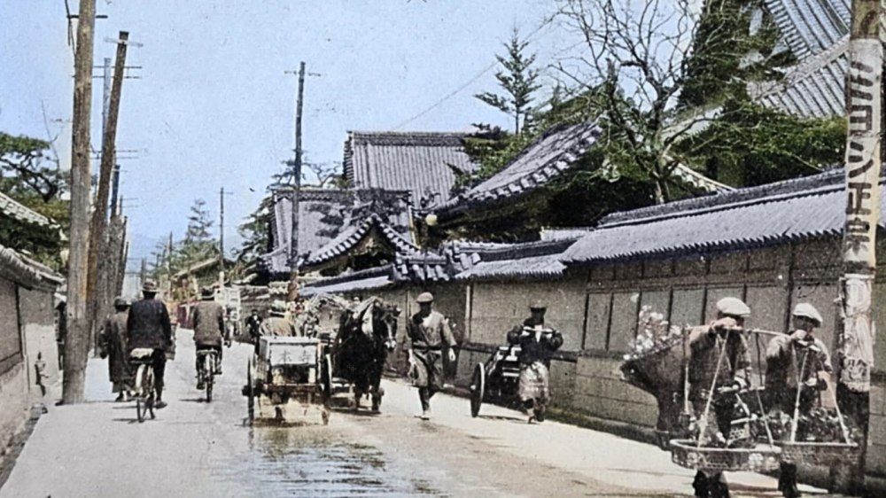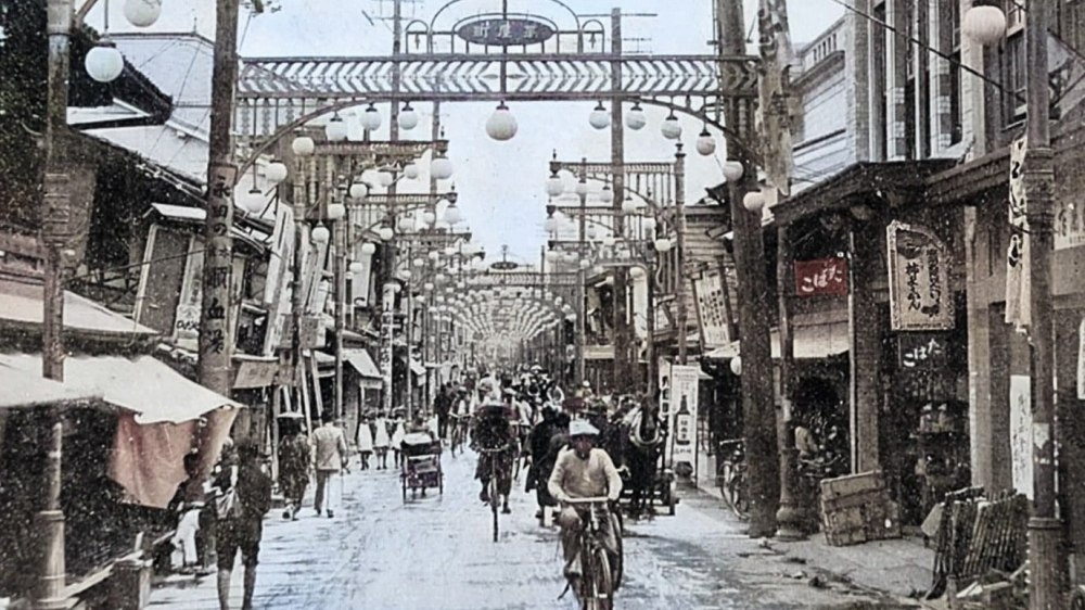 Photographie d'avant-guerre du centre-ville animé d'Hiroshima