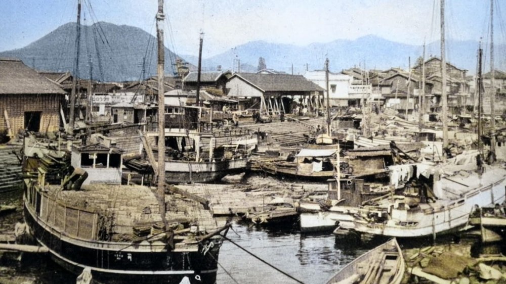 Photo d'avant-guerre du port d'Ujina, l'une des principales bases d'embarquement de l'armée japonaise pendant la Seconde Guerre mondiale.