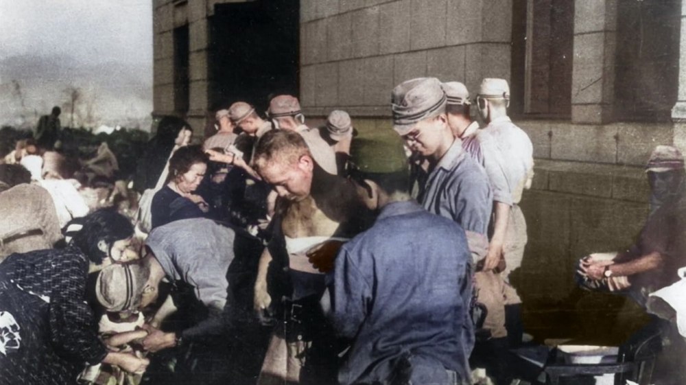 Peu de temps après le largage de la bombe atomique sur Hiroshima, les victimes ont reçu des soins médicaux d'urgence prodigués par des médecins militaires, 6 août 1945