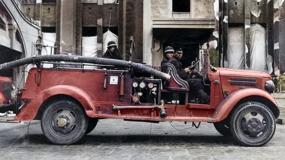 L'un des nombreux camions de pompiers japonais envoyés à Hiroshima peu après le bombardement atomique