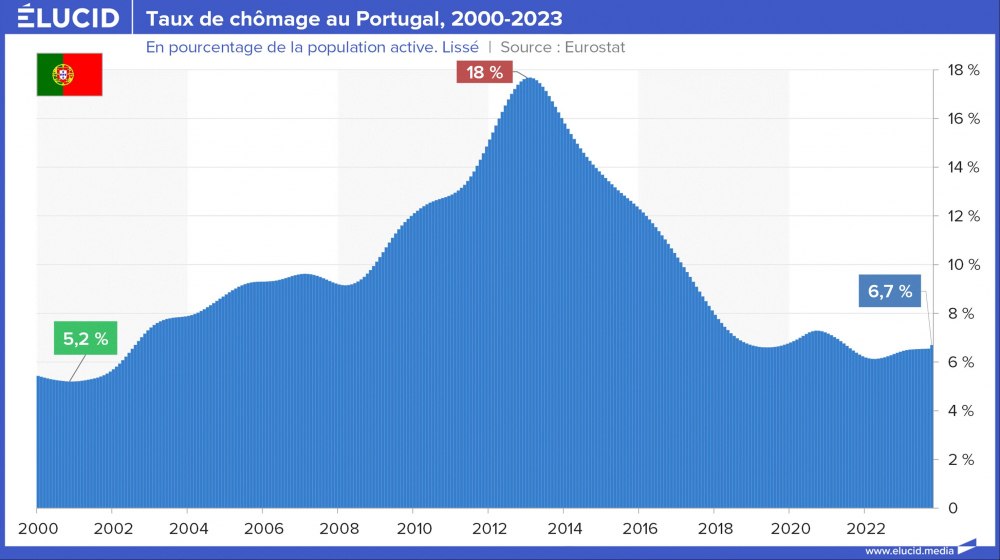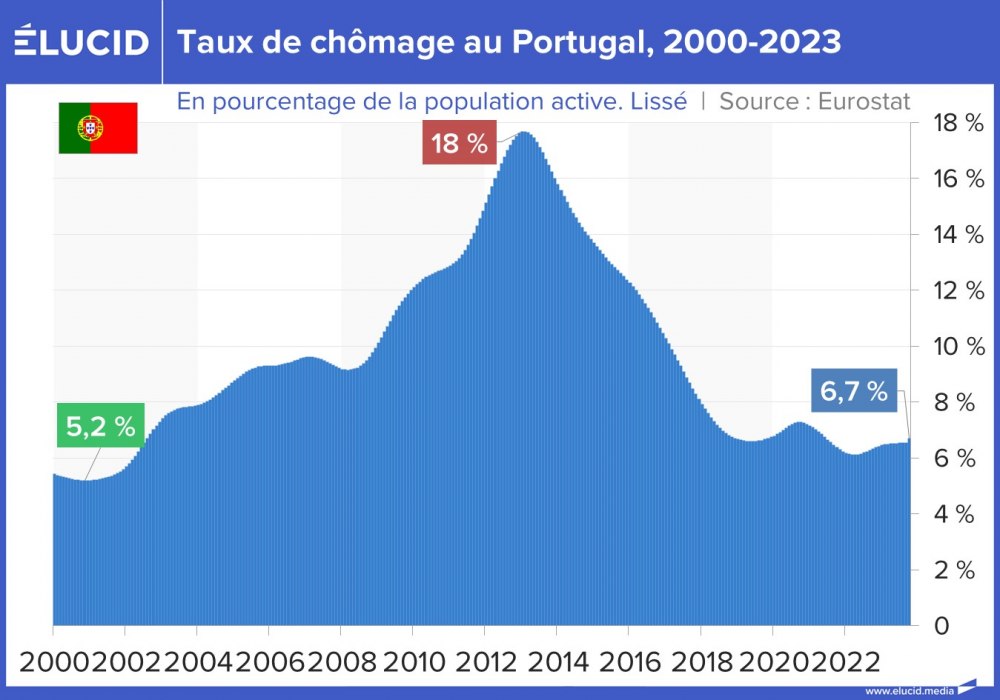 Le Portugal a été très touché par la crise des subprimes et son taux de chômage est monté jusqu’à 18 % en 2013. À partir de cette date, la croissance portugaise est repartie à la hausse et le chômage a diminué : c’est le « miracle économique portugais », dû en réalité à une politique non coopérative de baisse de la fiscalité pour les entreprises et les retraités étrangers, puis par l’arrêt progressif des politiques d’austérité budgétaires à partir de 2015. Le chômage portugais s’établit désormais aux environs de 6 %.