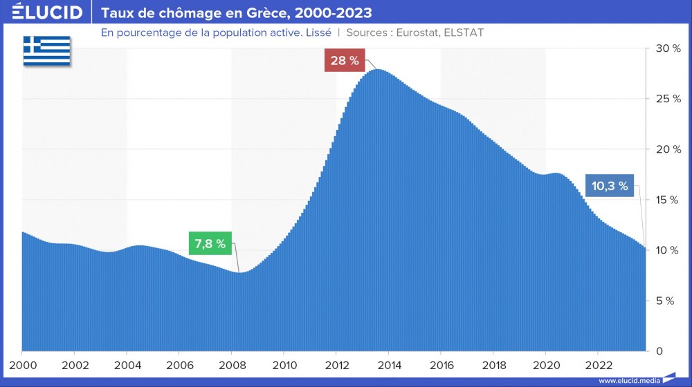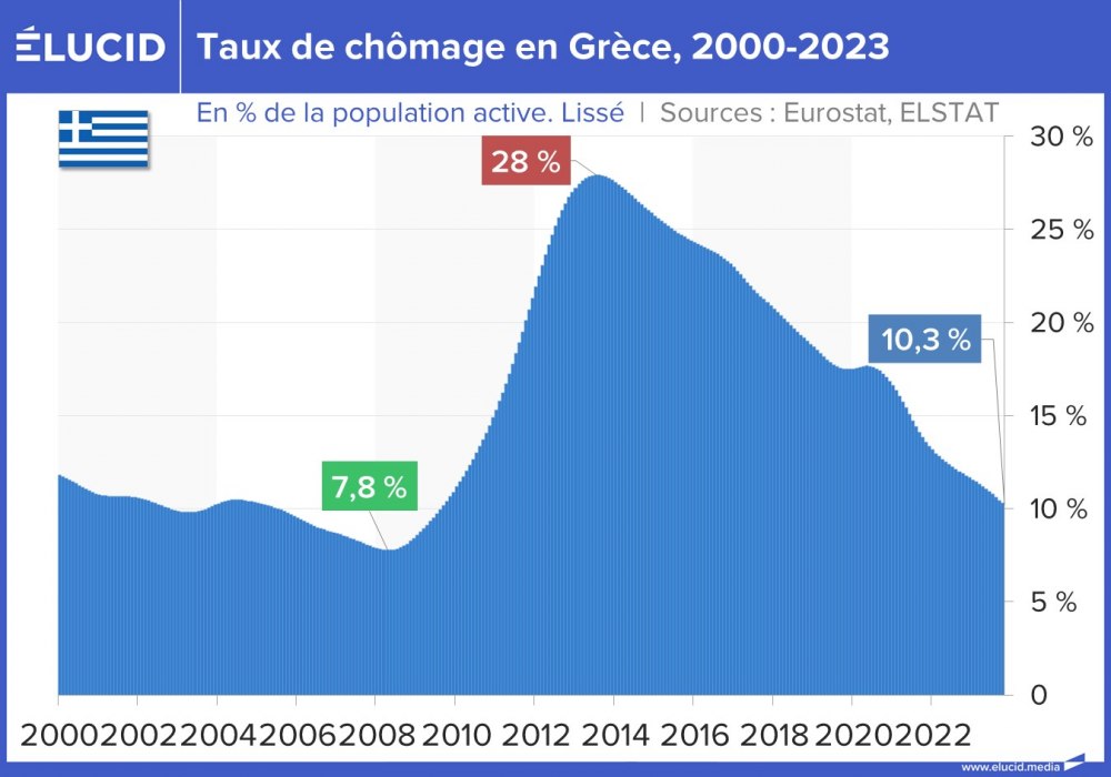 L’Espagne et la Grèce sont les deux pays d’Europe ayant connu l’augmentation la plus importante du chômage après la crise des subprimes, avec pour conséquence une crise de la dette publique. Les taux de chômage espagnol et grec ont ainsi dépassé 26 % et 28 % en 2013, notamment tirés par l’explosion du chômage des jeunes.