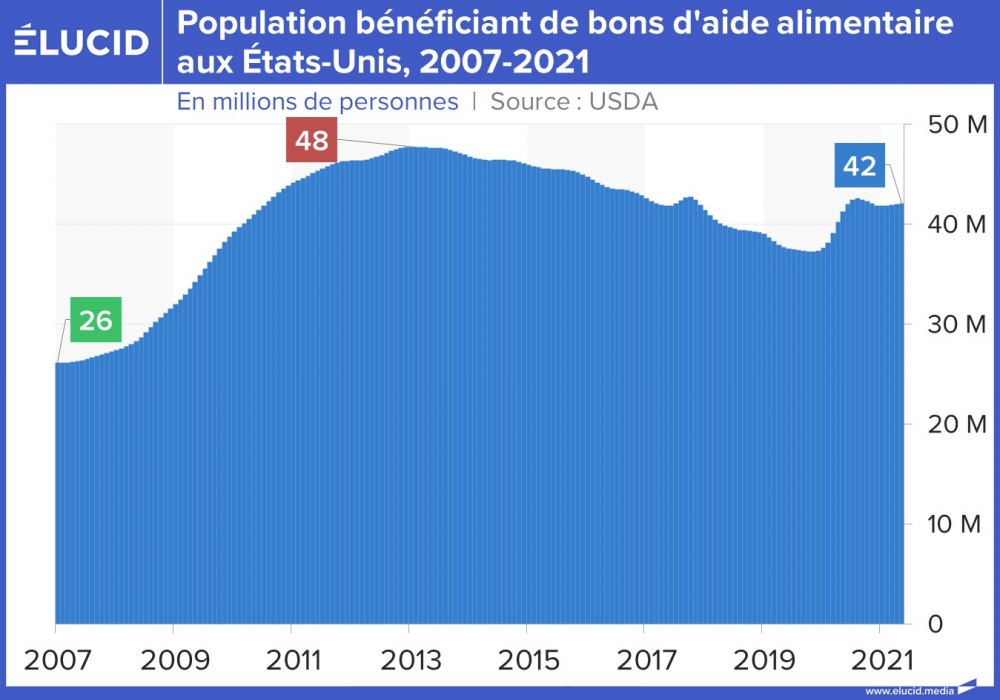 Le terme « plein emploi » rappelle la prospérité des 30 Glorieuses. Mais en pratique, les fruits de la très forte économie américaine sont mal répartis. Il y a très peu de chômeurs, mais énormément de travailleurs pauvres. 43 millions d’Américains bénéficient de bons d’aide alimentaires pour se nourrir, c’est 13 % de la population américaine.