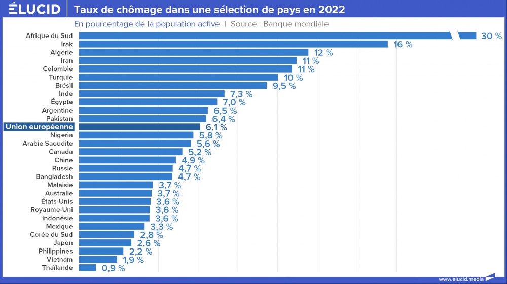 Alors que tous les pays d’Europe connaissaient une relative baisse du chômage depuis le milieu des années 2010, la pandémie mondiale survenue en 2020 a mis fin à cette tendance. Les niveaux de chômage demeurent disparates selon les pays, effet de l’euro oblige, avec une Allemagne qui enregistre un taux de chômage historiquement bas, tandis qu’il reste élevé en Espagne et en Grèce. Cependant, il faut bien comprendre que cette amélioration – quand elle n’est pas en partie fictive – est le résultat de politiques non durables et très coûteuses, dont la facture commence à apparaître cruellement. Pour bien comprendre la diversité des situations, nous vous proposons aujourd’hui un tour d’horizon du chômage autour du monde.