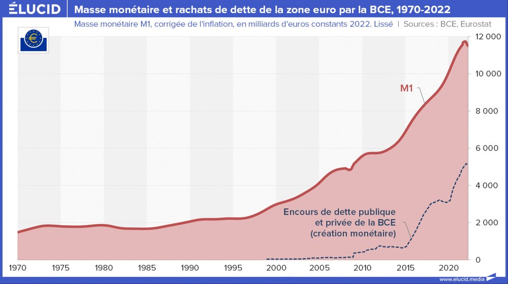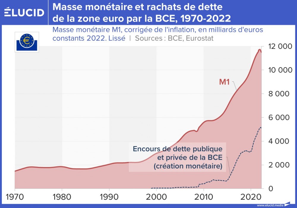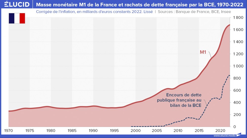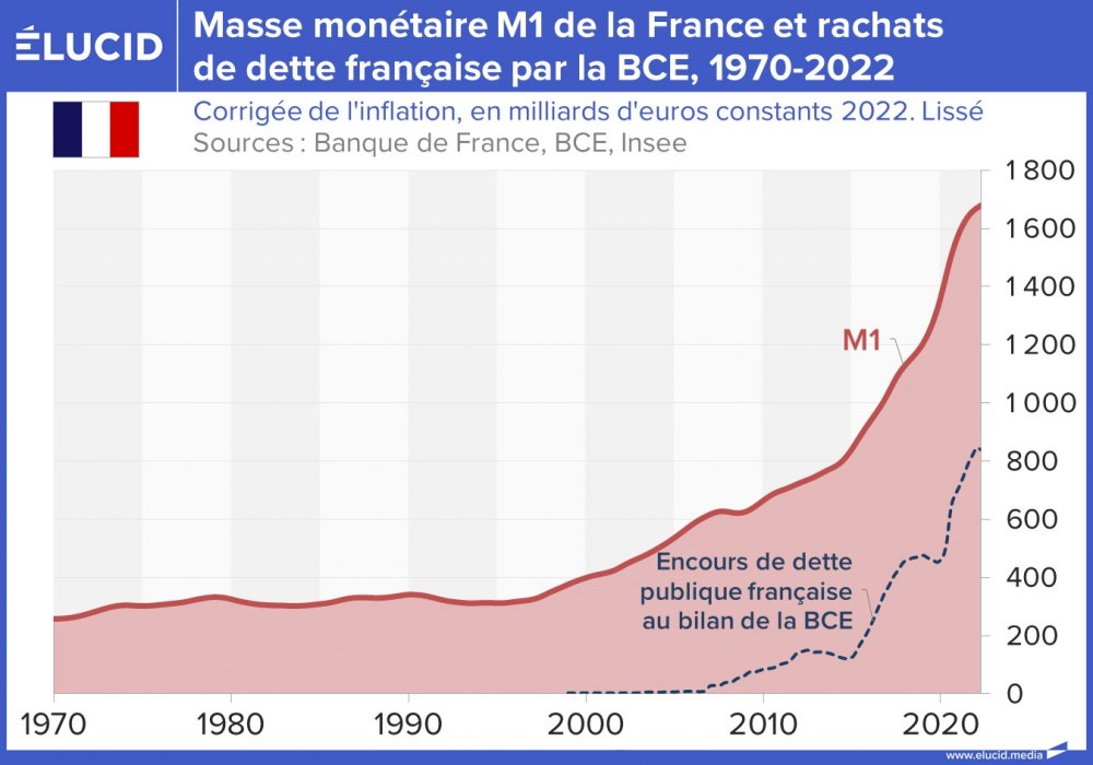 La BCE a également doublé la masse monétaire de la France entre 2014 et 2022, qui était pourtant restée longtemps stable.