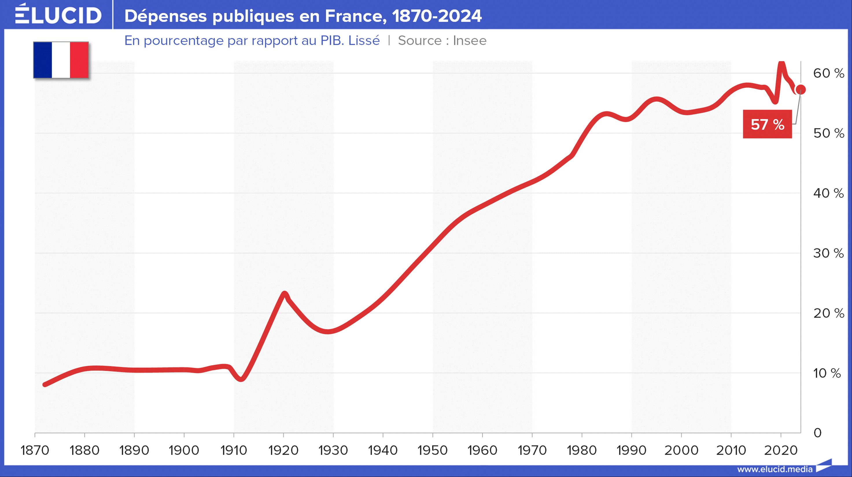Pourtant, il est vrai que la dépense publique augmente continuellement depuis des décennies. En 2024, elle atteignait 57 % du PIB (autant qu’en 2023), alors qu’elle était d’à peine 10 % du PIB au début du XXe siècle. Faut-il y voir le signe d’un gaspillage incontrôlé ? Non, et l’histoire de ces dépenses le démontre.