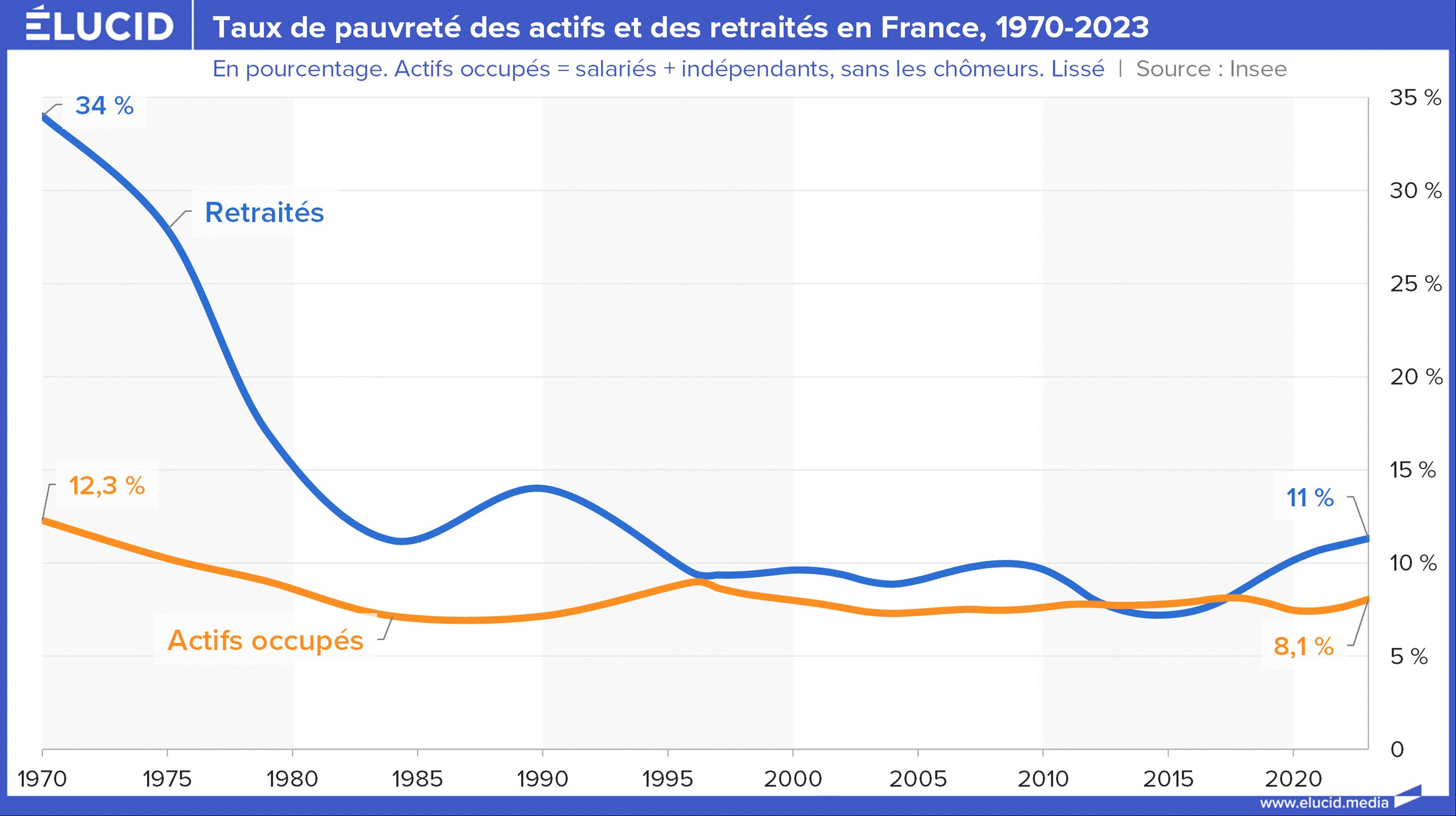 Après la guerre, la France a fait le choix de sortir les personnes âgées de la misère. Le taux de pauvreté des retraités est ainsi passé d’environ 45 % en 1970 à seulement 11 % aujourd’hui. Cela s’est accompagné d’une hausse logique des dépenses de retraite, mais c’était le prix à payer pour que nous vivions tous dignement à la retraite. C’est une avancée sociale majeure, qui a hélas été remise en cause récemment, ce taux étant reparti à la hausse sous la présidence Macron.