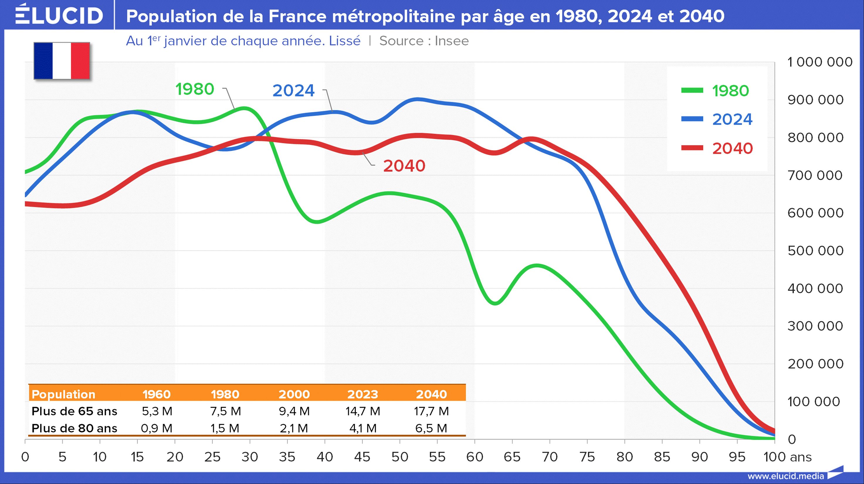Ce choc démographique va se poursuivre et s’amplifier dans les années à venir, sous l’effet combiné de l’allongement de l’espérance de vie – rendu possible par le système de santé mis en place après-guerre – et du vieillissement des générations nombreuses du baby-boom. Par exemple, la population des plus de 80 ans va augmenter de moitié d’ici 15 ans.