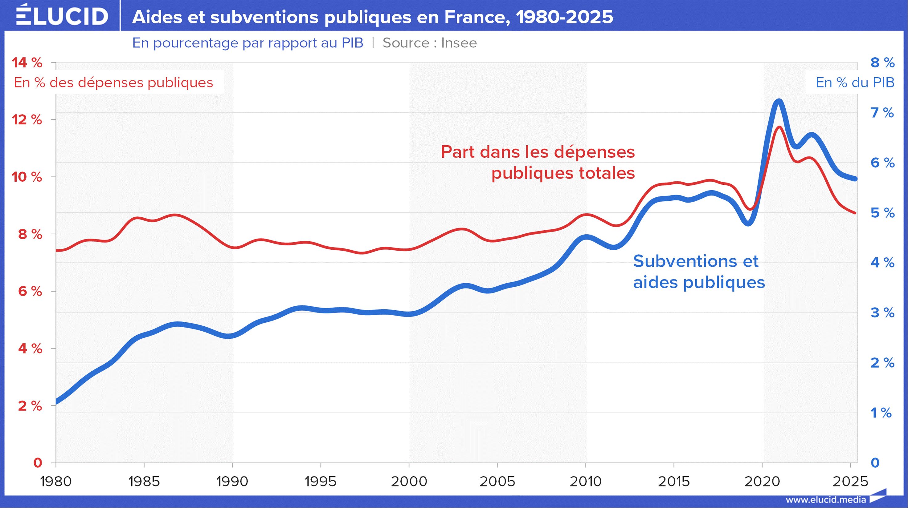 Le poids des seules subventions est passé d’environ 5 % des dépenses publiques totales au début des années 2000 à 8–10 % aujourd’hui. Cela tient en partie au pillage néolibéral de l’État au profit du privé, mais c’est aussi une conséquence de l’euro : comme la monnaie unique pénalise notre industrie par des taux de change inadaptés en Europe, on subventionne nos entreprises pour éviter qu’elles ne s’effondrent face à une concurrence avantagée par cette distorsion monétaire.