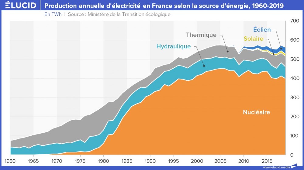 La décision politique majeure, prise dans les années 1970, fut le développement d’un important programme nucléaire civil, en vue de remplacer le pétrole dans la production d’électricité. Cette décision avait pour but de diminuer la dépendance de la France au pétrole.