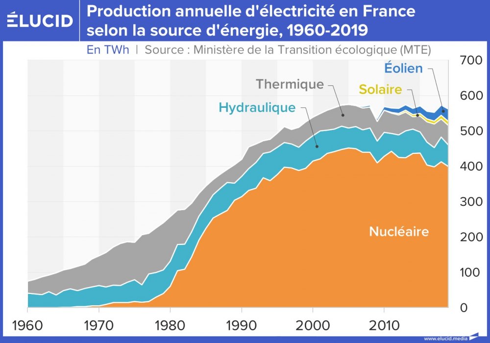 Bien que le nucléaire pose de sérieux questionnements (gestion des déchets, risques d’accident, dépendance aux importations d’uranium…), il a permis de diminuer nos émissions de gaz à effet de serre (GES), le nucléaire étant une énergie décarbonée.