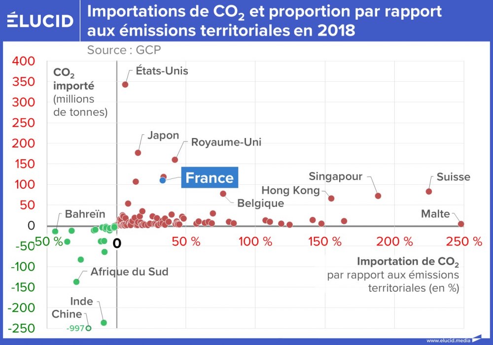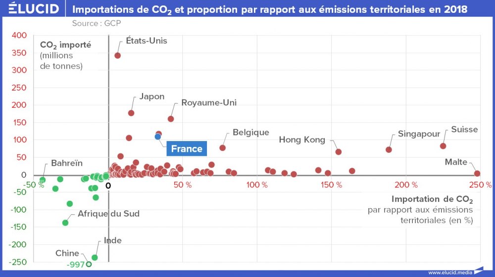 Au niveau mondial, la France est un des principaux « importateurs de CO2 » avec 100 millions de tonnes de CO2 en 2018 derrière le Royaume-Uni, le Japon et les États-Unis. Ces importations représentent près de 40 % du volume de CO2 émis sur le territoire français (pour les besoins locaux ou les exportations), un des taux les plus élevés parmi les pays industrialisés.