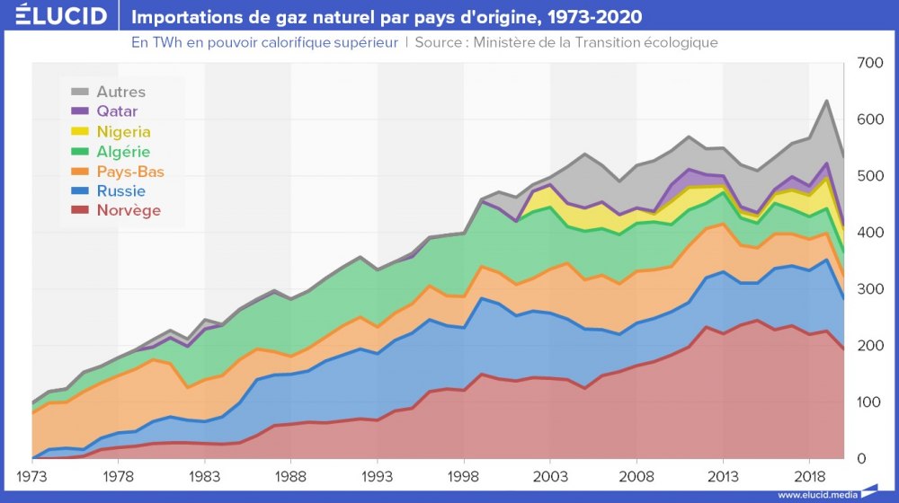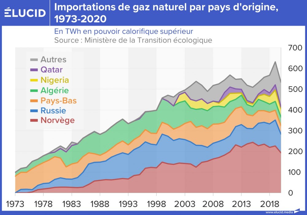 D'autre part, la France a importé des quantités record de gaz naturel, utilisé pour le chauffage domestique mais aussi pour la génération d'électricité. Or, ces hausses d'importations de gaz sont souvent présentées comme devant compenser l’intermittence de production du solaire et de l’éolien. Mais comme la France est à la traîne sur les renouvelables, notre pays est donc perdant sur les deux tableaux : des importations de gaz record et un faible développement des énergies renouvelables.