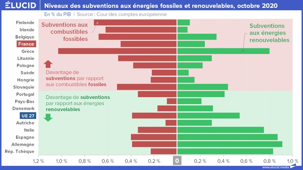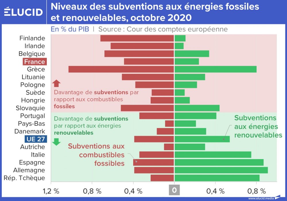 Sous Emmanuel Macron, la France s’est également maintenue en bonne position dans le classement des pays qui subventionnent le plus les énergies fossiles. Selon une étude de la Cour des Comptes européenne, la France consacrerait 0,25 % de son PIB en subventions nettes aux énergies fossiles, soit plus de 6 milliards d’euros par an, au détriment des énergies renouvelables.