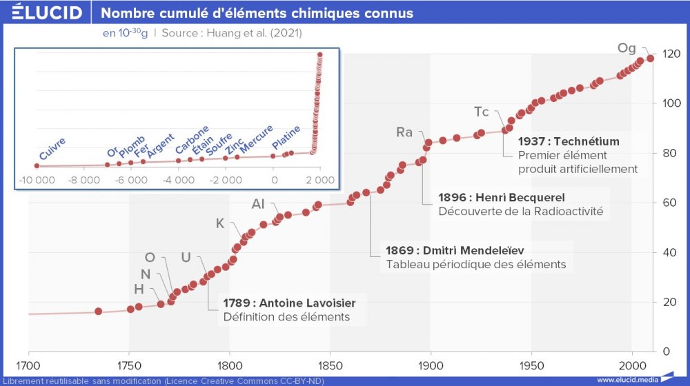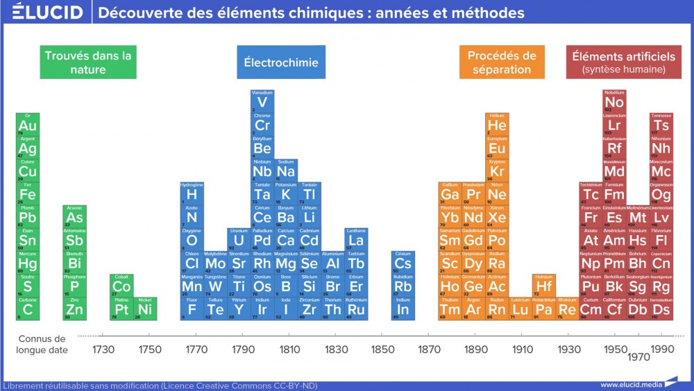 L’Humanité a ainsi mis des milliers d’années pour découvrir les 20 premiers éléments chimiques, mais seulement deux siècles lui auront suffi pour découvrir les 100 suivants.