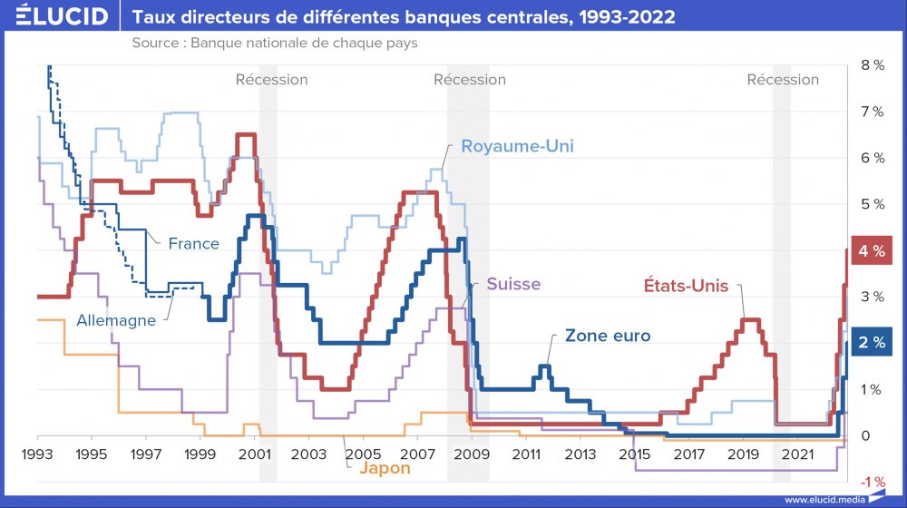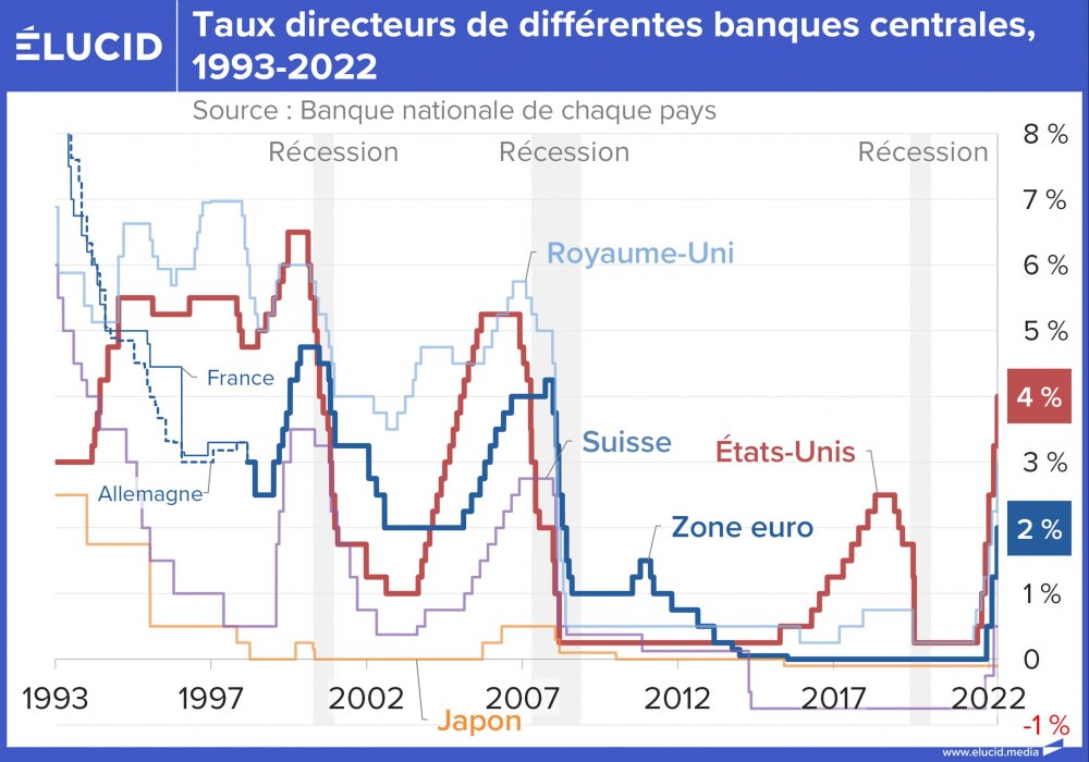 S’ils font cette erreur, ils savent pertinemment qu’ils laissent filer le levier qu’il leur confère un pouvoir presque infini sur les peuples et leurs gouvernants. Dans ce contexte, les banquiers centraux ont décidé – depuis le début de l’année 2022 – d’agir en urgence et de restaurer cette confiance en remontant agressivement les taux d’intérêt, et en réduisant drastiquement la création de nouvelle monnaie centrale.