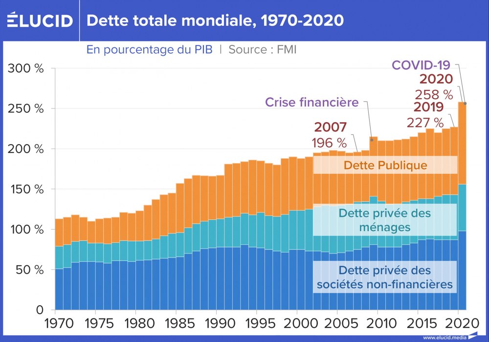 Tout se passait bien pour la finance et les banques centrales : des marchés financiers en lévitation malgré une croissance en berne et une inflation des prix à la consommation modérée. Mais un élément imprévu, le Covid-19, vint contester ce déroulement monétaire presque idyllique. Cette fois, le réel s'est mêlé au monde virtuel de la finance : l’économie s'est mise à l’arrêt, les chaînes de production et d’approvisionnements se sont rompues ; en même temps, les États accéléraient leur endettement pour garantir les emprunts des entreprises en difficulté et pour subventionner les ménages et les entreprises.