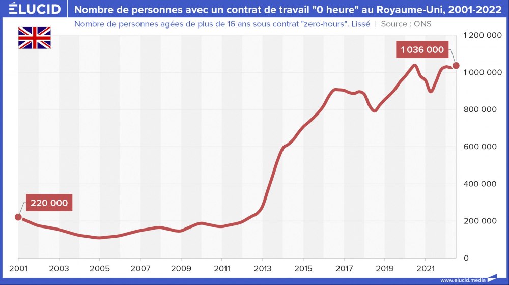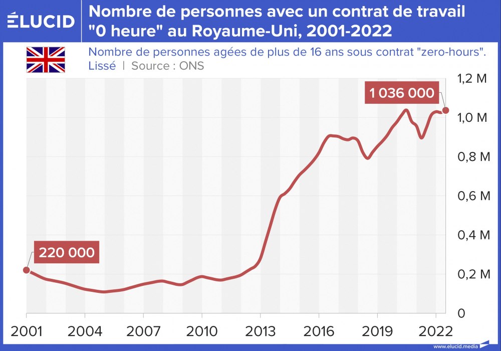 En plus du développement du travail indépendant, du travail intérimaire et du temps partiel, on note l’émergence et la multiplication des contrats « zéro heure ». Leur caractéristique est de permettre aux employeurs de ne mentionner dans le contrat aucune indication d'horaires ni de durée minimum de travail. Le salarié perçoit une rémunération uniquement pour les heures travaillées et doit se rendre disponible à tout moment dans la journée.