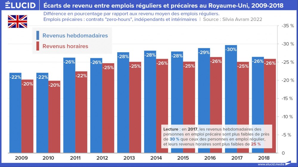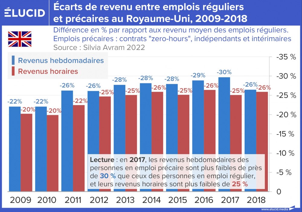 Déjà en situation de précarité, les travailleurs qui occupent ces emplois ont de plus des revenus hebdomadaires entre 20 % et 30 % plus bas que ceux qui occupent des postes stables, ce qui accroît leur fragilité.