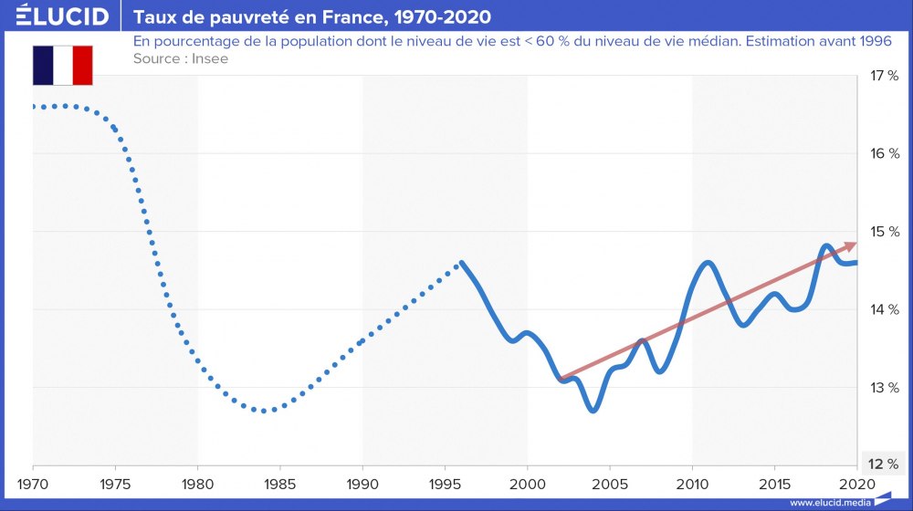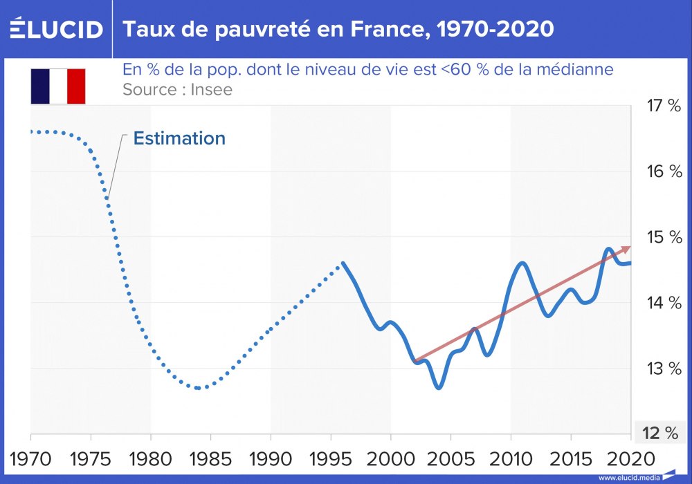 En conséquence, au-delà de petites fluctuations régulières, le taux de pauvreté poursuit sa tendance haussière de long terme. Rappelons que près de 40 % des chômeurs ont sombré dans la pauvreté.