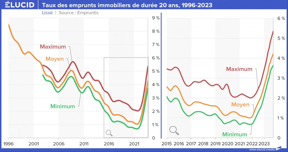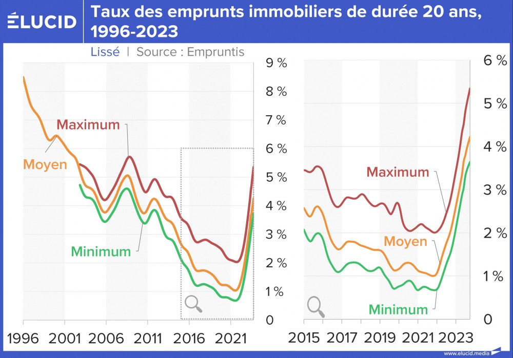 La hausse des taux décidée par les banques centrales se répercute mécaniquement sur les taux des emprunts immobiliers.