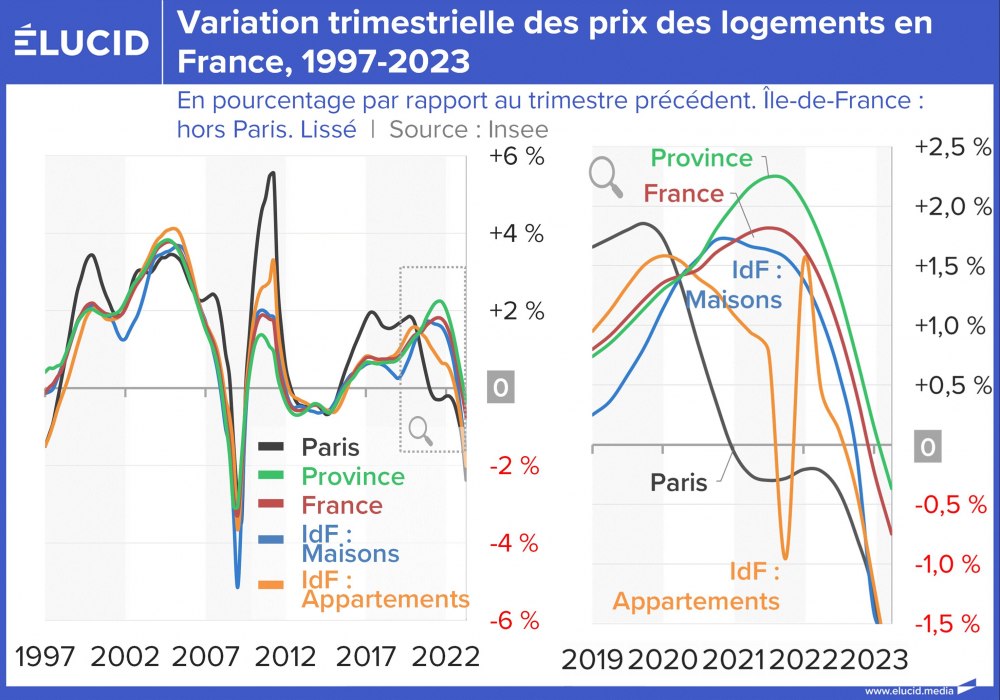 La crise immobilière a donc déjà commencé et celle-ci s'aggrave (et pas qu'en France). Il est cependant trop tôt pour s’avancer sur sa durée et sa profondeur.
