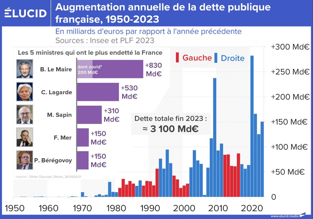 Bruno Le Maire va d’ailleurs probablement bientôt devenir le ministre champion du monde de la dette, avec bientôt plus de 1 000 milliards d’euros créés, ce qui nous a fait dépasser le montant de dette de l’Allemagne et même de l’Italie, ancienne championne d’Europe de la dette.