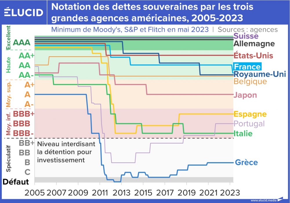 Cette gestion calamiteuse s’opère d’ailleurs avec la complicité des agences de notation, qui, malgré les simagrées régulières dans les médias sur le ton de « les agences vont-elles dégrader la France ? », continuent à noter la France à des niveaux bien trop élevés. Elles joueront ainsi dans la crise future des dettes publiques le même rôle qu’elles ont joué durant celle des subprimes.