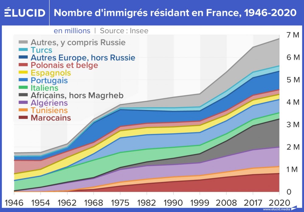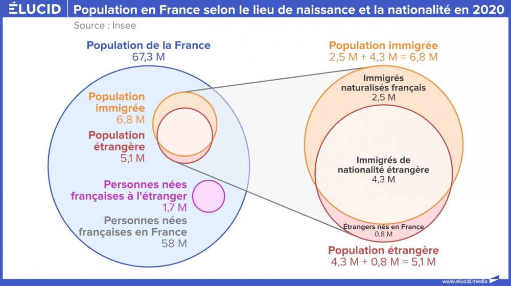 À l’inverse, il existe également près d’un million d’étrangers nés en France, donc non immigrés, qui sont principalement les enfants de deux étrangers n’ayant pas encore obtenu la nationalité française (la nationalité pouvant s’obtenir à partir de 13 ans).