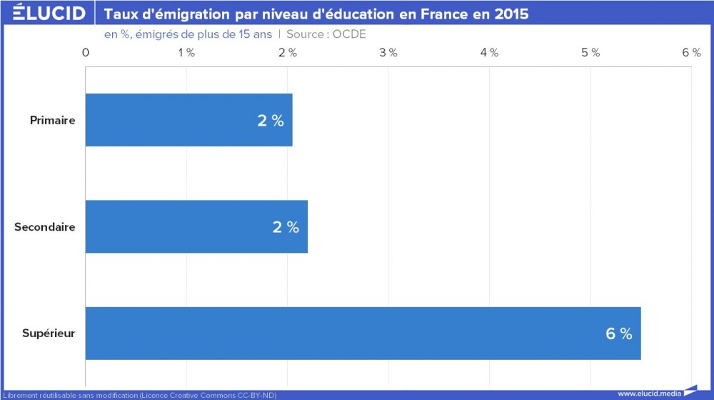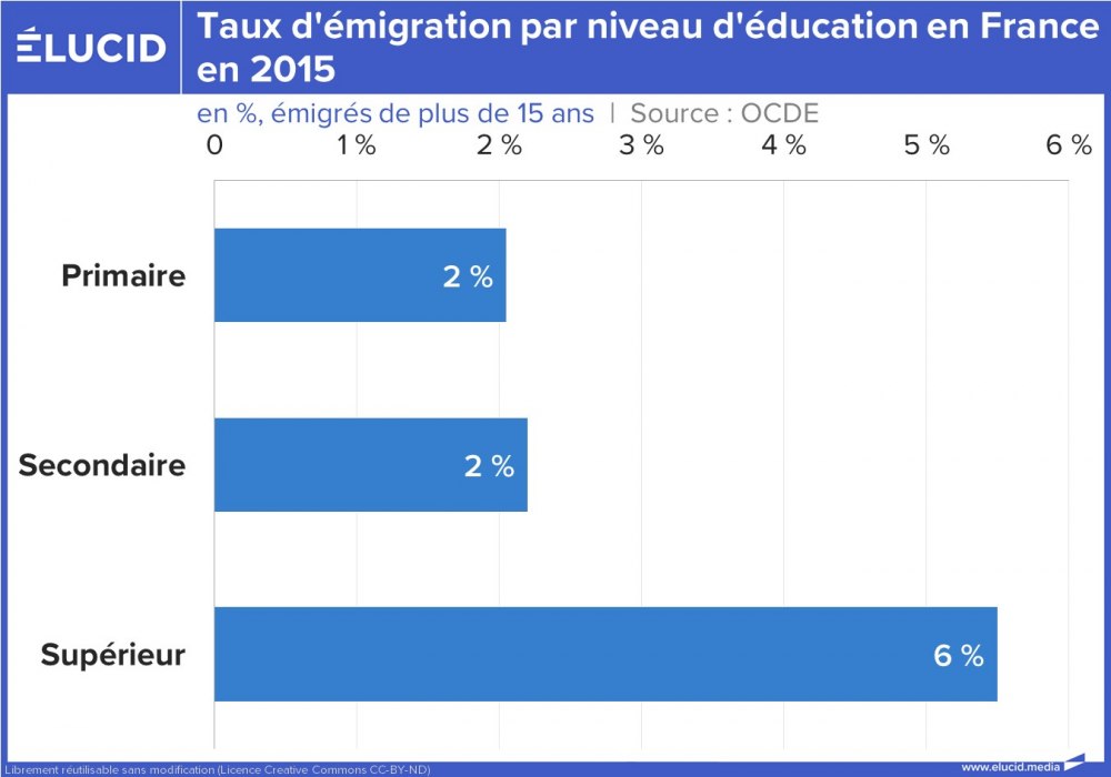 Si l'on observe la structure éducative, on s'aperçoit effectivement que ce sont les diplômés du supérieur qui sont le plus touchés par ce phénomène d’émigration : environ 5,4 % des diplômés du supérieur étaient des émigrés en 2015 contre 2 % pour les autres stratifications éducatives.