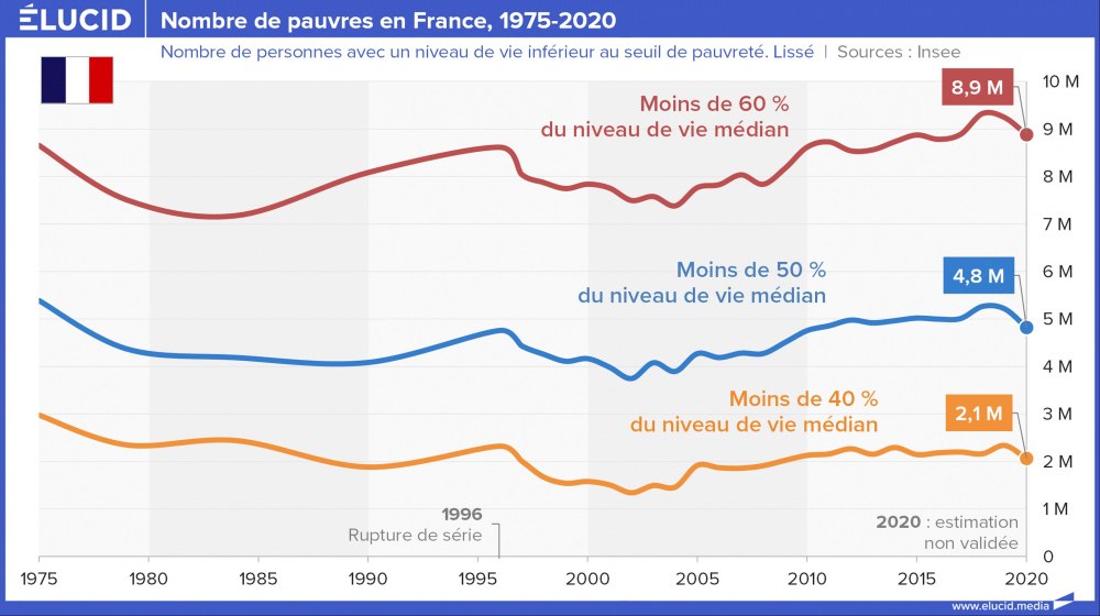 Comme le souligne l’Observatoire des Inégalités, le modèle social tricolore contient l'explosion de la pauvreté sans être parmi les meilleurs élèves européens, ni parvenir à la faire reculer. D’ailleurs, la tendance depuis les années 2000 est à la hausse : « [le taux de pauvreté] est aujourd’hui plus élevé qu’au milieu des années 2000 ».
