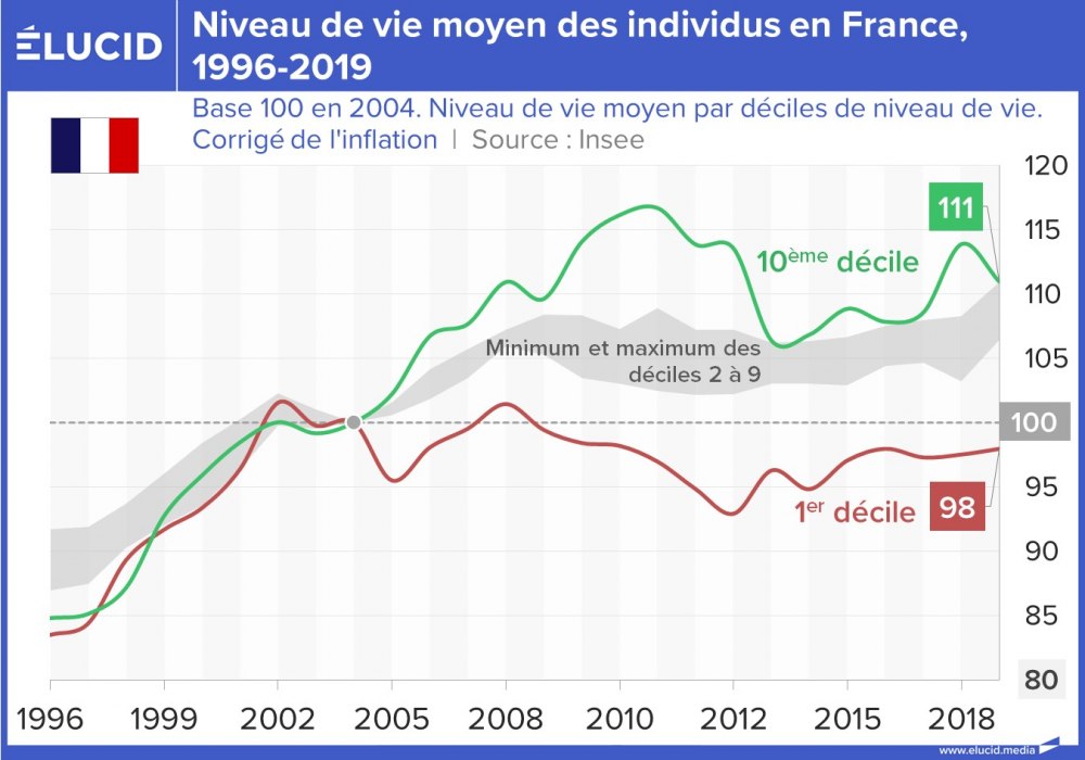 Si la condition des plus précaires stagne, le rapport entre revenus des plus riches et des plus pauvres tend lui à croître, signe d’une amélioration des conditions de vie… de la catégorie la plus aisée de la population.