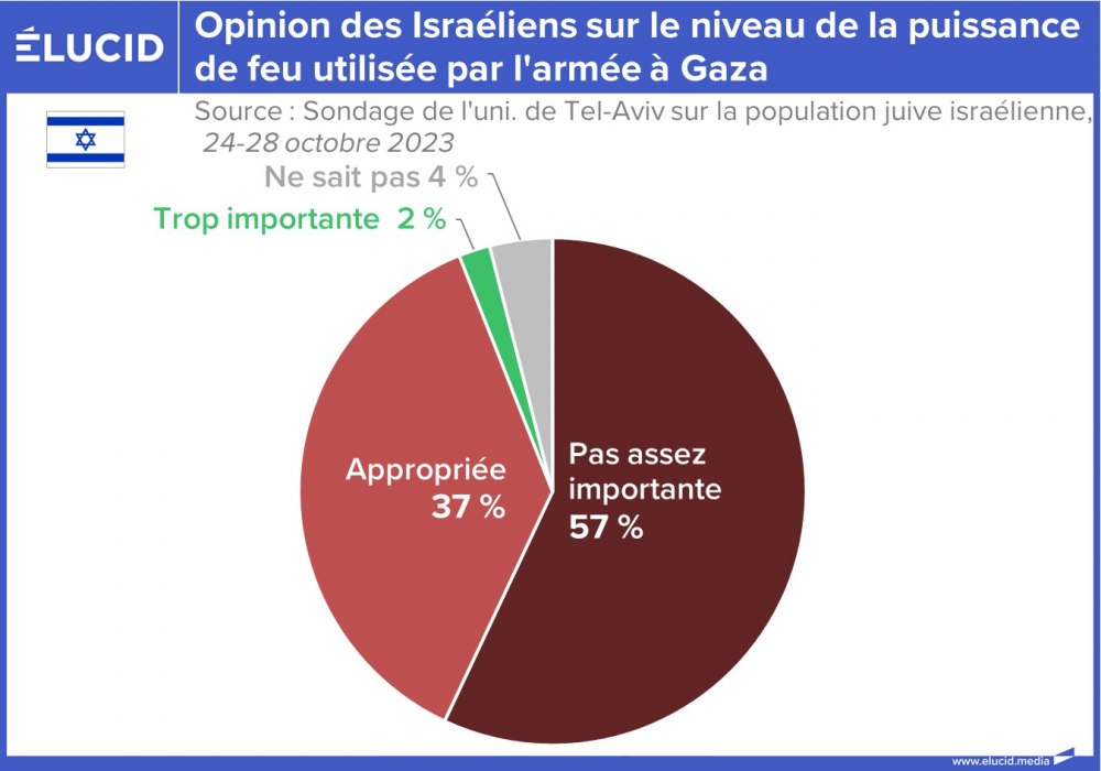 Comme le rappelle fort bien Michèle Sibony, le niveau de propagande en Israël est difficilement concevable, tant il est démesuré. Son impact sur la population est important. Ainsi, quand on a demandé aux Israéliens, au bout de presque un mois de féroces bombardements et de milliers de morts à Gaza, comment ils jugeaient la puissance de feu déployée, près de 60 % la jugeaient encore « insuffisante » et un peu plus de 35 % « appropriée ». Seuls 2 % l’ont jugée « trop importante ».