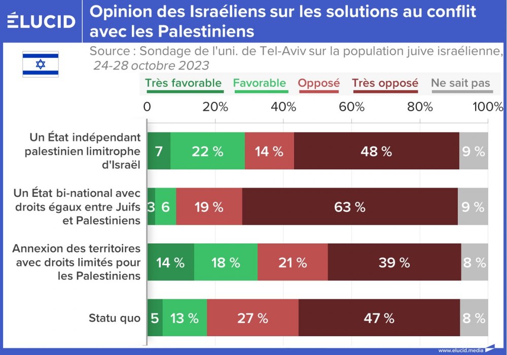 Pire encore, quand on présente aux Israéliens différentes options pour l’avenir, ils refusent la solution à 2 États, la solution à 1 État et même le statu quo !