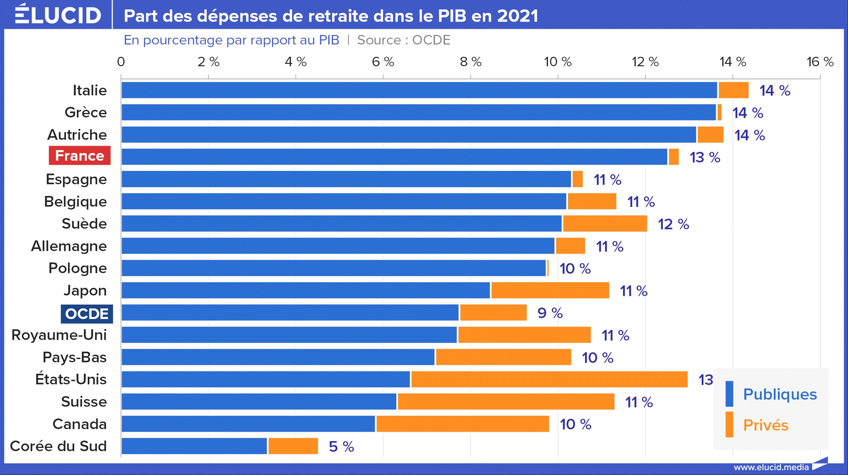 À nouveau, si l’on regarde le total public+privé, avec 13 %, la France n’est pas une aberration coûteuse. Elle a simplement choisi un système largement public, financé par la solidarité nationale.
