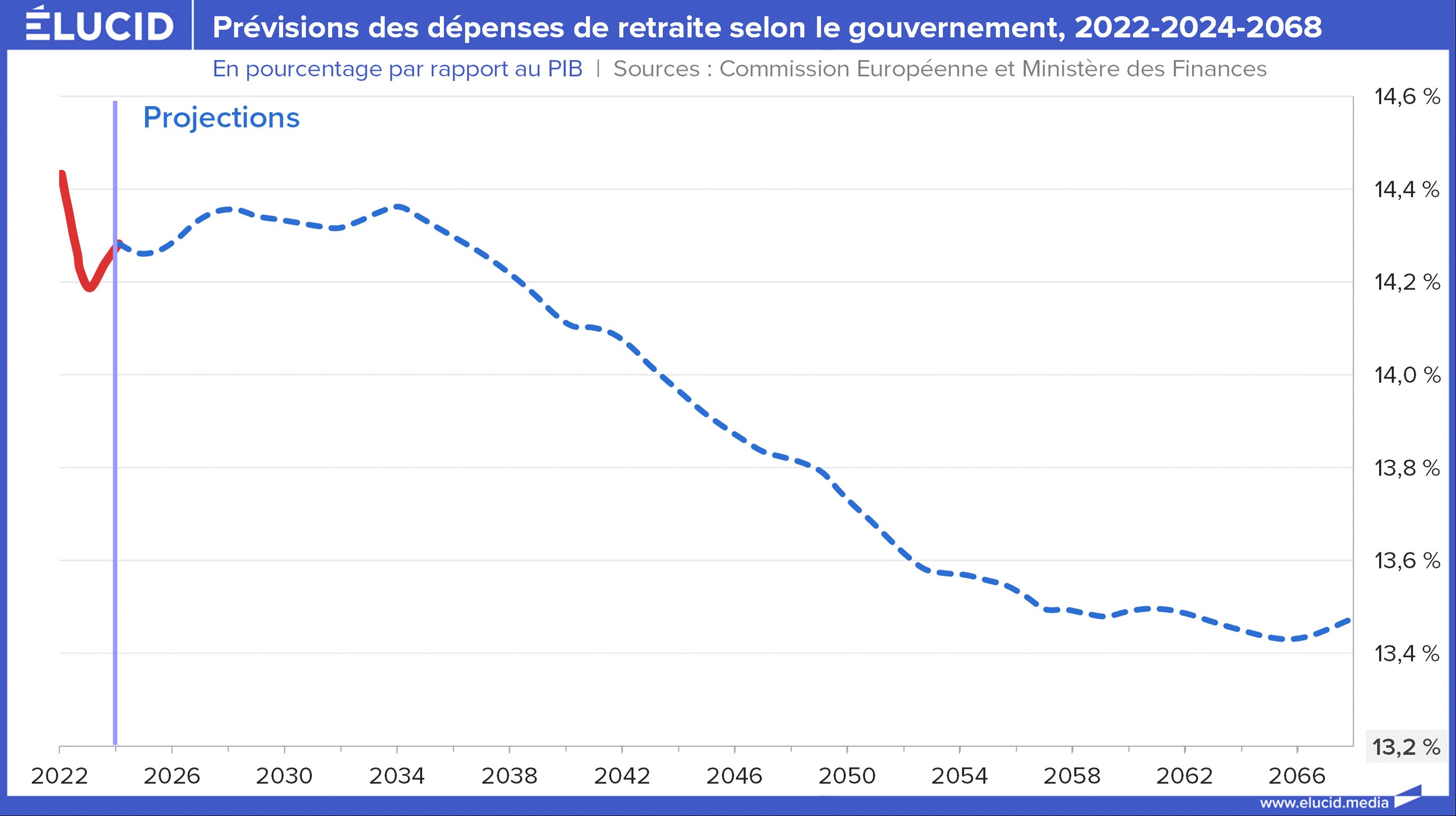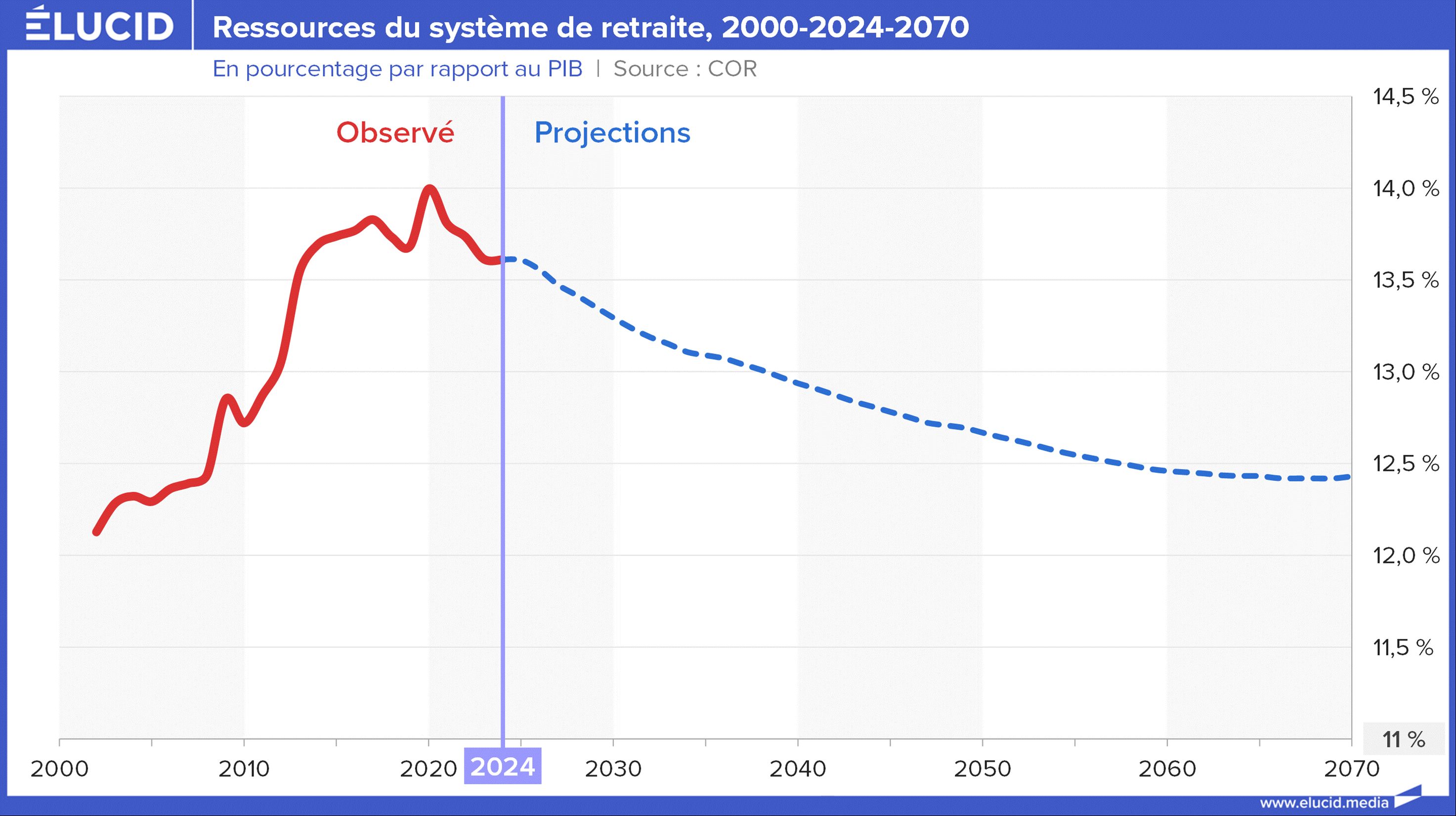 « Grâce aux réformes adoptées depuis plus de vingt ans, la part des dépenses de retraites dans le PIB devrait baisser de manière marquée entre 2013 et 2060 (-2,6 points). La France se trouverait ainsi dans une position relativement favorable par rapport à ses partenaires européens pour faire face au vieillissement de sa population. »