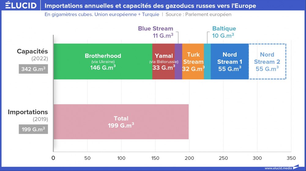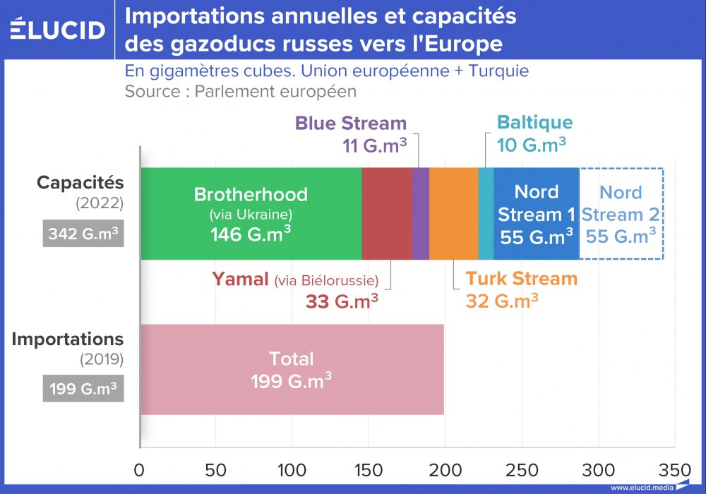 Les deux gazoducs Nord Stream permettent donc de se passer presque entièrement du transit par l’Ukraine et/ou d’augmenter, si besoin, les importations européennes de gaz russe.