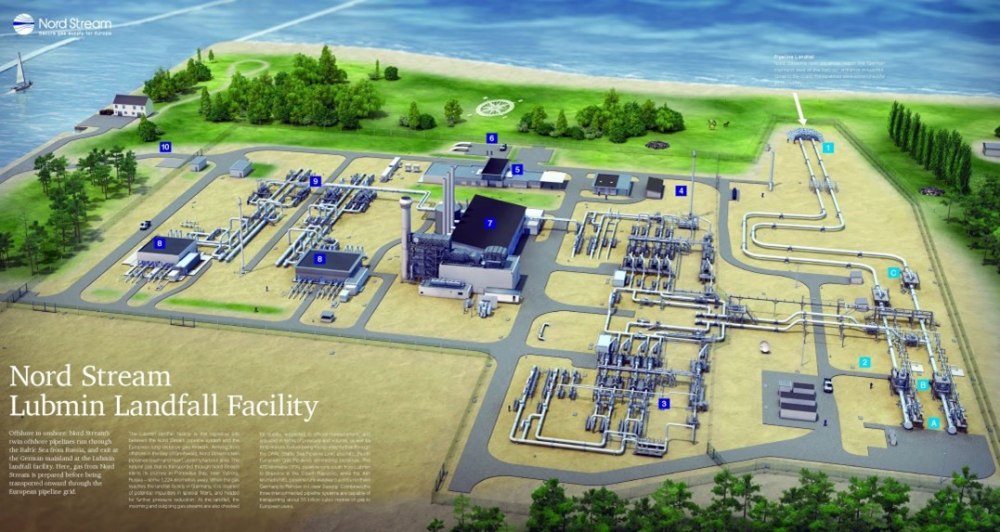 Point d’arrivée en Allemagne des tuyaux jumeaux de Nord Stream 1 en Allemagne, à Lubmin. © Nord Stream AG