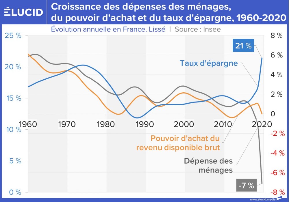 Les dépenses des ménages sont fortement liées aux évolutions du pouvoir d’achat. Elles s’en distinguent, car les revenus perçus par les ménages permettent aussi d’épargner.
