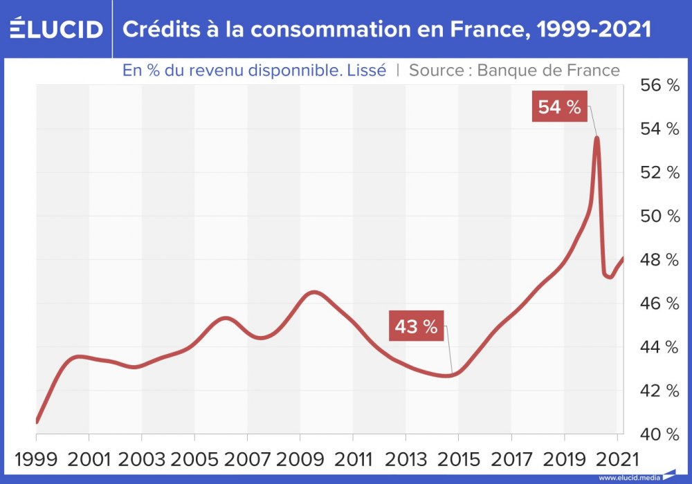 L’augmentation de l’endettement des ménages, notamment via les crédits à la consommation, témoigne de cette réalité. Si ces crédits permettent à court terme de gagner en pouvoir d’achat, ils augmentent cependant à long terme le montant des dépenses « pré-engagées ».