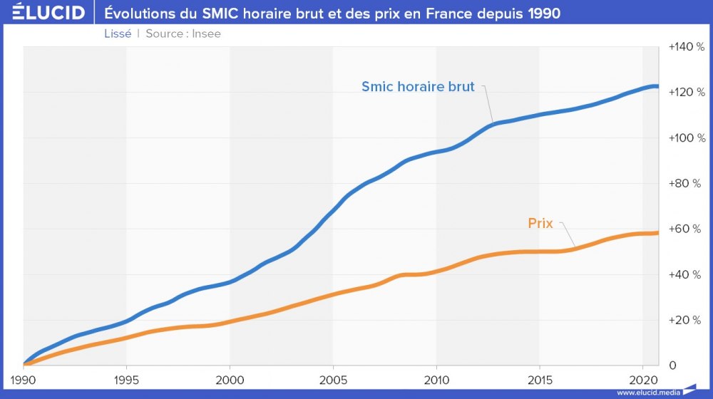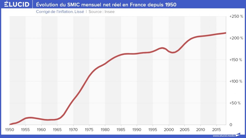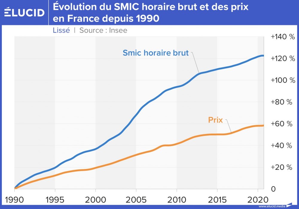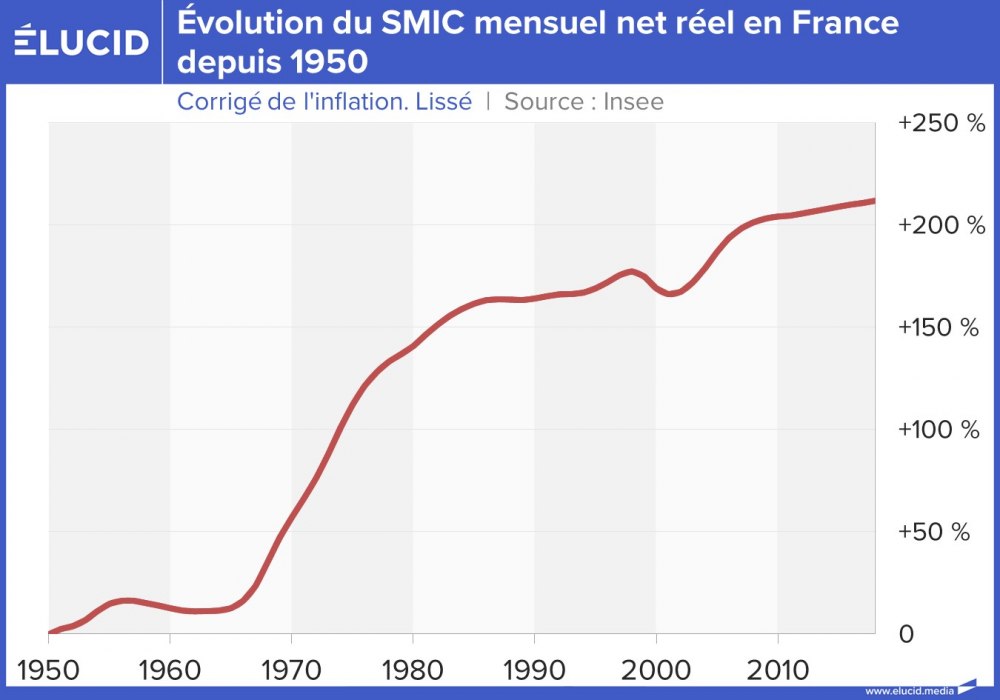 Ainsi, avec un revenu qui augmente moins que l’inflation vécue par les classes populaires, les salariés au SMIC voient donc leur pouvoir d’achat diminuer sur la période récente. À cela s’ajoute la problématique de l’augmentation continue des dépenses « contraintes ».