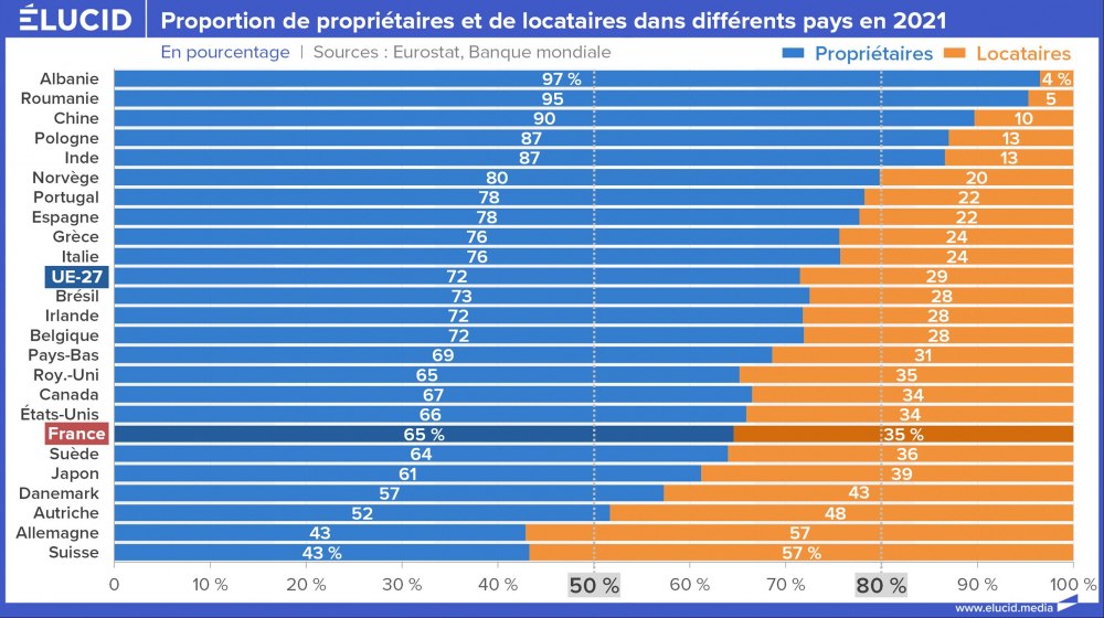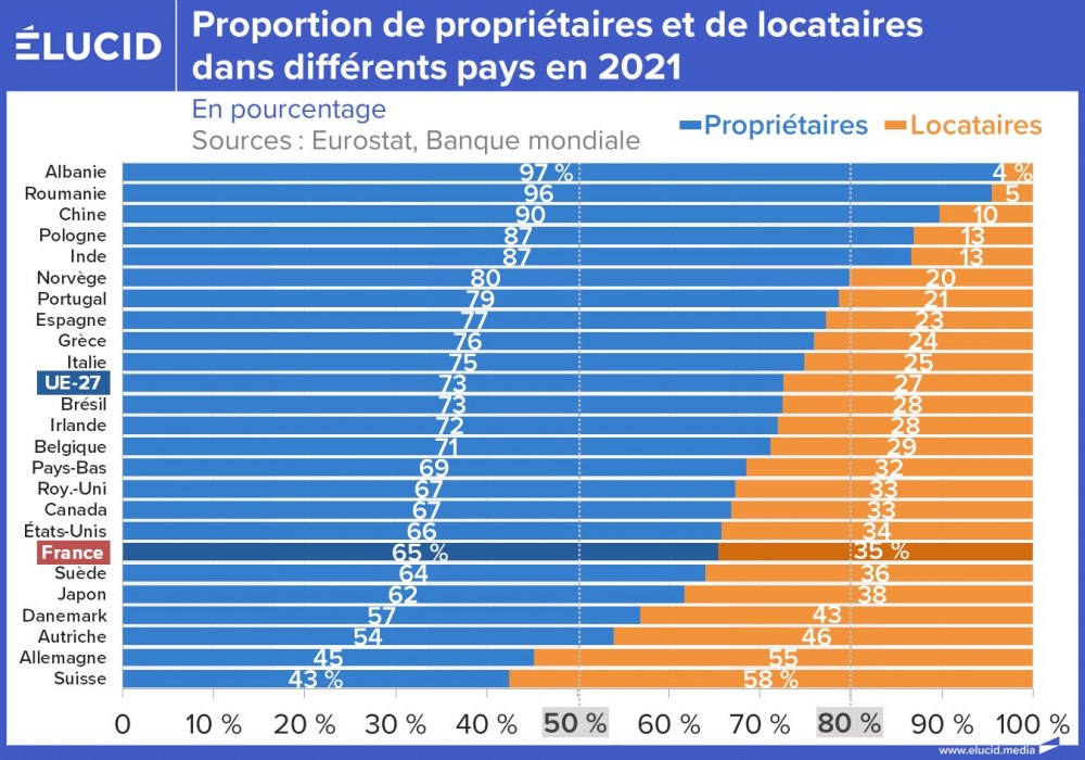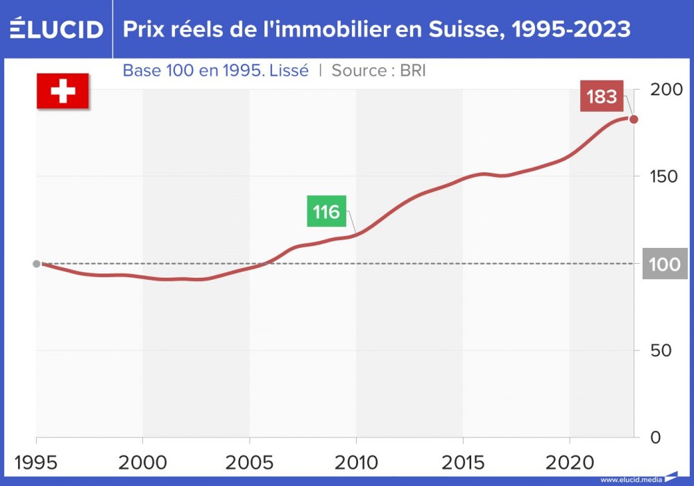 Il n’y a cependant pas eu la même explosion des prix, car le taux de propriétaires dans le pays est faible, ce qui ne crée pas de tension sur le marché. En 2021, seulement 43 % des Suisses étaient propriétaires : c’est le taux le plus bas d’Europe. Les prix se sont ensuite stabilisés en 2022.