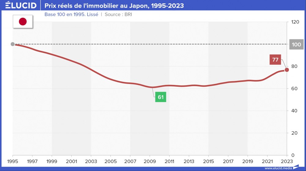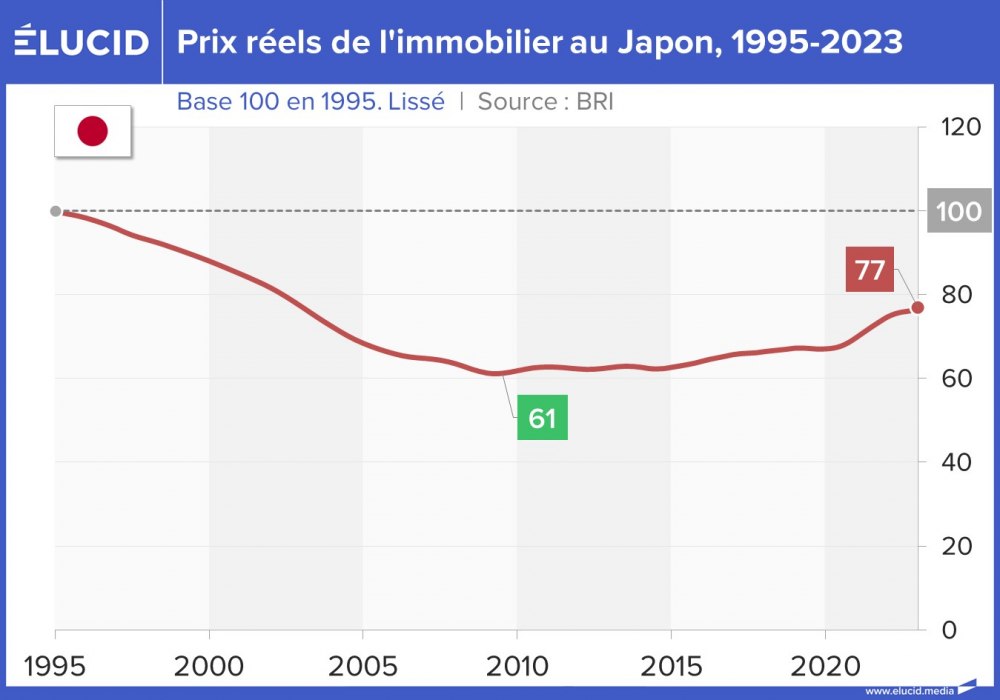 Le Japon est le premier pays à avoir connu une bulle immobilière. L’explosion de cette bulle au milieu des années 1990 a fait chuter les prix de l’immobilier de 1995 à 2009. Les prix du marché japonais ont ainsi baissé de 40 %, avant de réaugmenter de 15 % au cours de la décennie suivante.