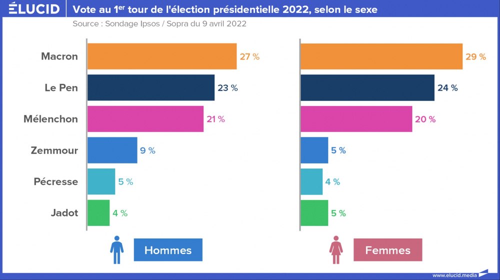 Comme nous l'avions déjà pointé, à part pour Zemmour, le genre a peu d'influence sur le vote.