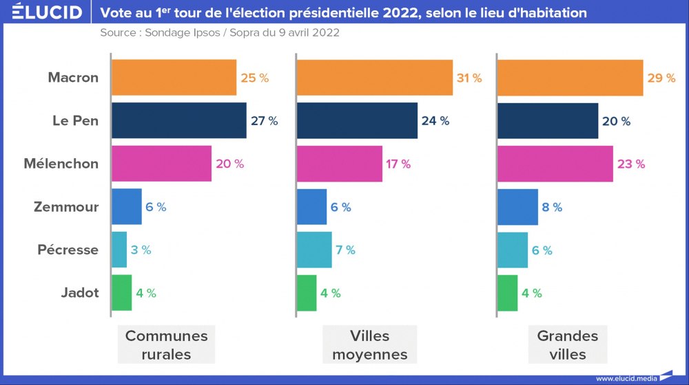 La résultante des effets précédents fait que, au final, il n'y a pas de grande différence au niveau de la localité, Le Pen restant mieux implantée dans les communes rurales.