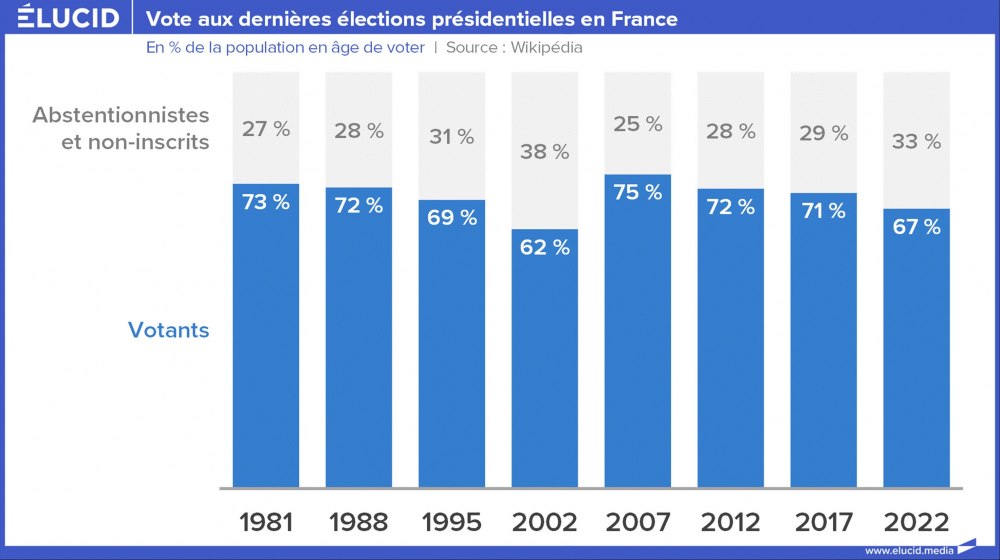 L'abstention réelle (tenant compte des 8 % de personnes non inscrites sur les listes électorales en 2022) a été d'un tiers des adultes de plus de 18 ans.