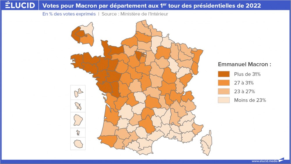 Le vote Macron a été le plus fort dans l'Ouest et en Île-de-France.