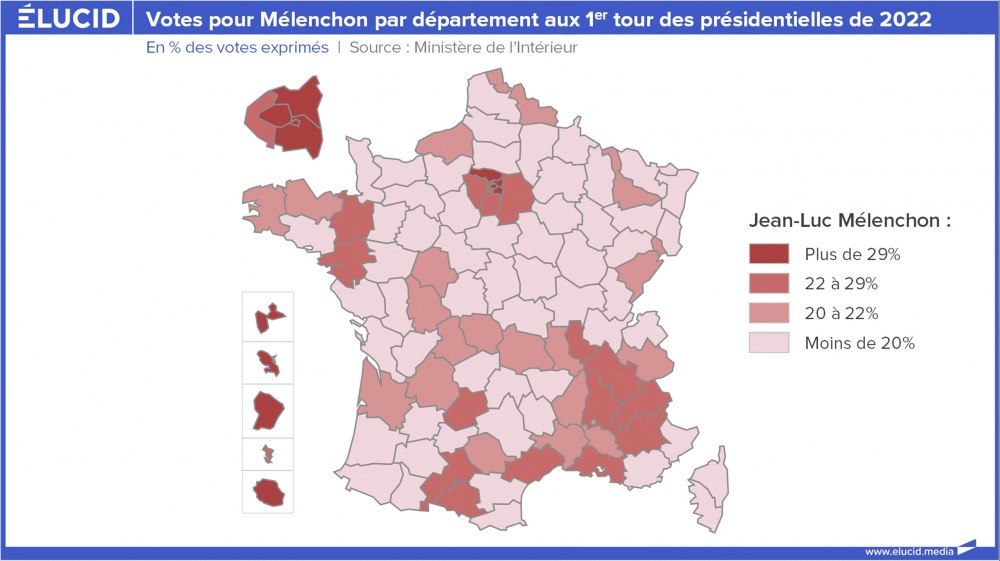 Le vote Mélenchon a été particulièrement élevé en Île-de-France, dans le Sud-Est et, plus généralement, dans les grandes villes universitaires.