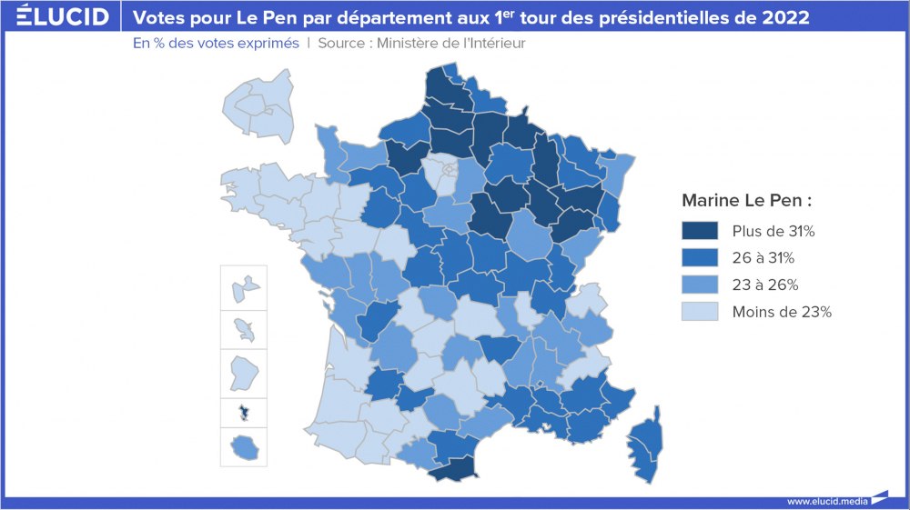 Le vote Le Pen a été le plus fort dans le Nord et l'Est.
